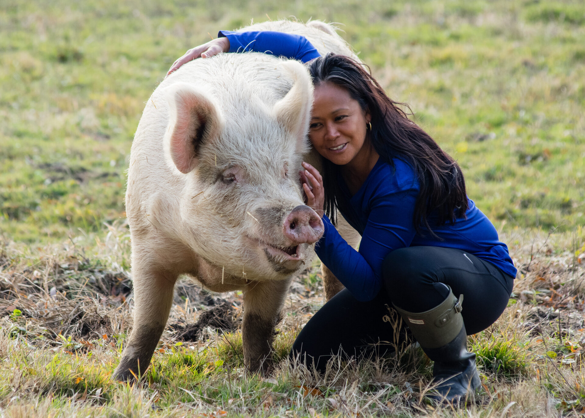 Kathy Stevens, Founder, views the Sanctuary as the embodiment of her two greatest passions: animals and teaching. While Kathy speaks, writes and raises money in support of our work, her greatest joy is in connecting good-hearted people with the animals we love, then stepping back to watch as the animals work their magic and change human lives. Her second greatest joy? Kissing pigs.