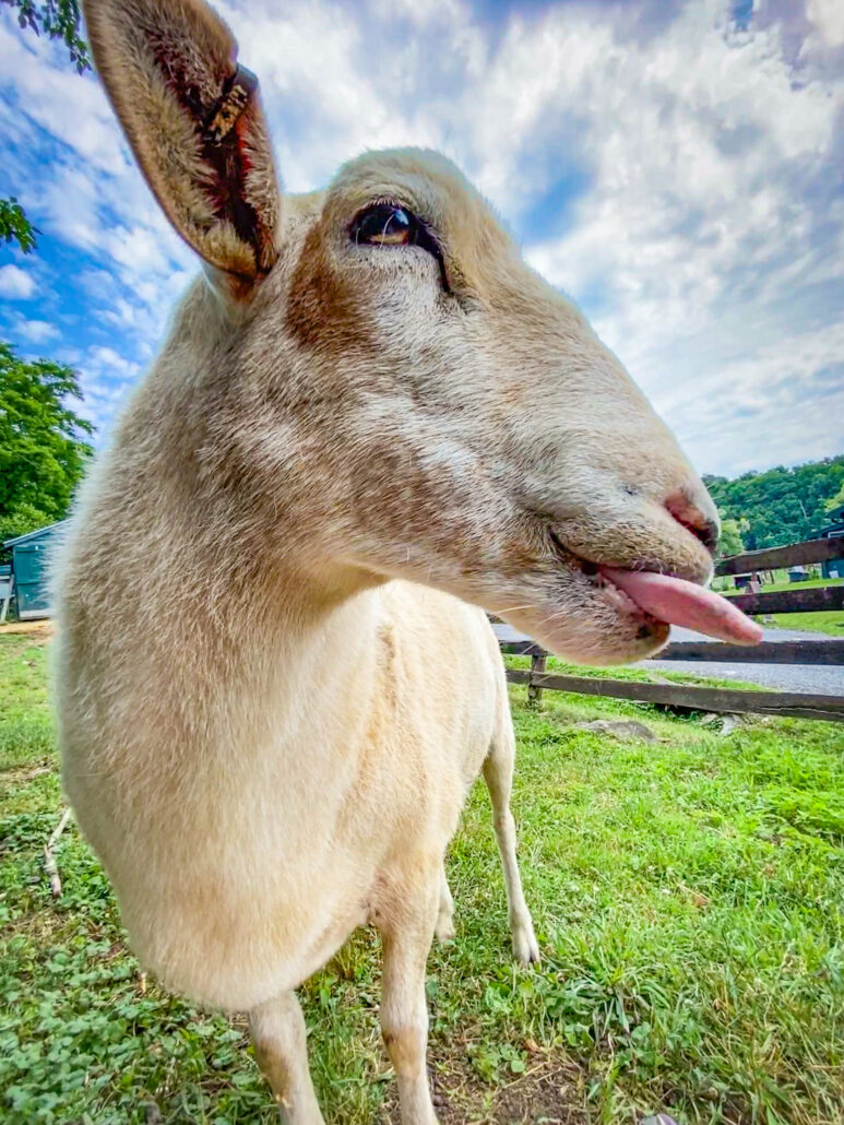 Ferguson is a lovable oddball! Likely due to being raised alongside goats, he developed an independent personality that’s quite unusual for a sheep. He greatly prefers human company (and a few close friends) over following the rest of the herd and is usually seen wandering alone. He is always one of the first to greet visitors, enjoys snuggles, and has been known to try to climb into cars when folks are leaving after their visit! Ferguson is a one-of-a-kind sheep, looking for sponsors who celebrate his unique personality here at CAS.