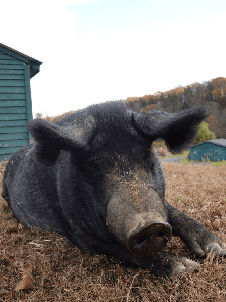 | Mario was once described by his former farmer as “the sweetest pig” he’d ever met, and he continues to live up to that reputation every day. He’s very appreciative of belly rubs and cheek scratches! As one of the most easygoing pigs at Catskill Animal Sanctuary, Mario has a way of putting everyone around him at ease. Now a senior who moves a little slower, he enjoys his peaceful routine and thrives thanks to the steady support of sponsors who help keep his golden years full of dignity and love. |