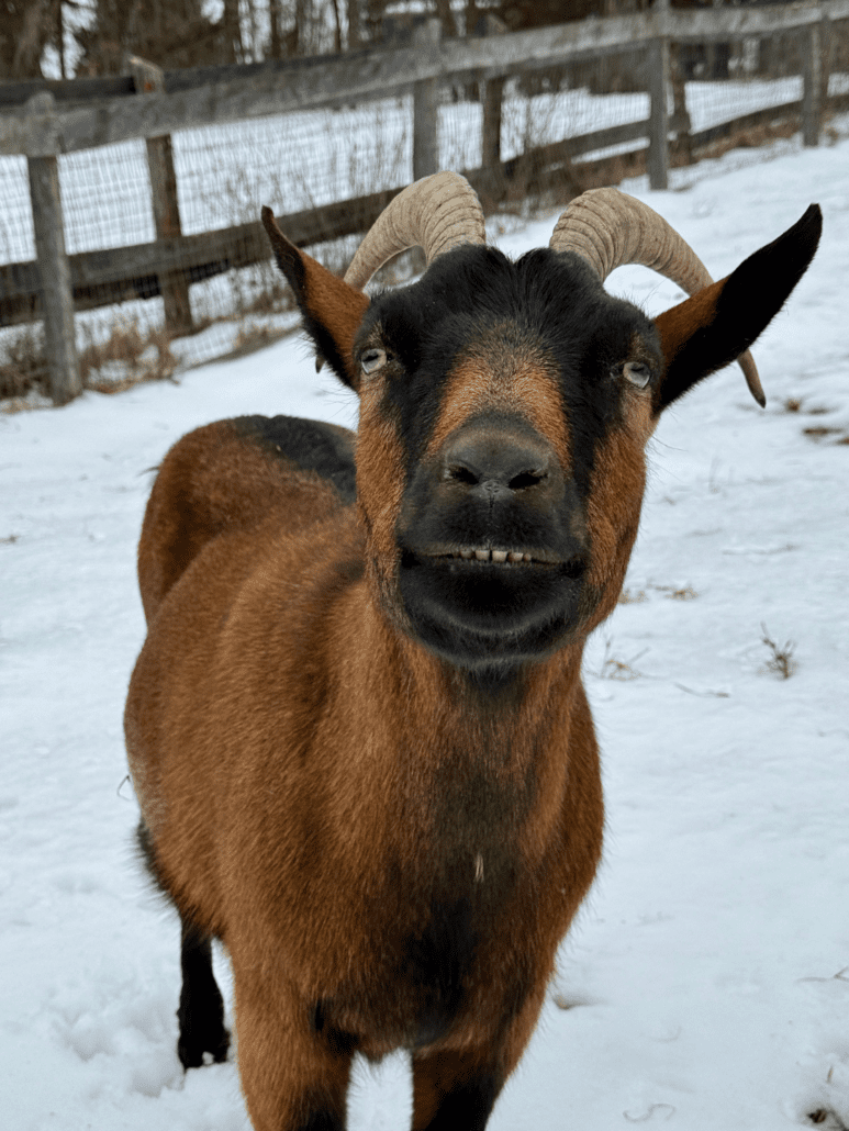 Sven is confident, friendly, and very charming. He’s famous for his signature move: slowly backing up and “parallel parking” against your leg until you give in and start petting him. As part of our free-roaming Underfoot herd, Sven takes his role seriously by greeting visitors and always keeping a curious eye on all the goings-on. Despite being a senior, he’s still full of energy and enjoys a playful rivalry with Levi. Sven is a special goat, looking for sponsors who can help him continue to live the life he loves here at CAS!