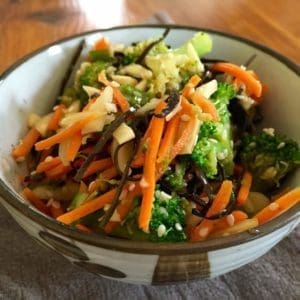 Simple ingredients can often yield the best results in the kitchen. Broccoli and carrots aren’t the most trendy or exotic vegetables, but their colors, textures, and shapes create a gorgeous backdrop in the recipe. This Broccoli Carrot Teriyaki Salad weaves simplicity into an exciting and vibrant dish with a tasty, fresh dressing. Not enough can be said about the health benefits of broccoli and its cruciferous cousins. Broccoli is associated with lower risk of several cancers including colon, breast, and lung cancer. Want to improve bone health and look younger? Vitamins C and K are abundant in broccoli and support both.