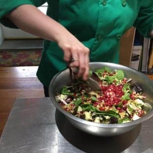 The holiday table is full of rich, comforting cooked dishes, but what about salad? Good news: it doesn’t have to be boring! Make this Endive-Radicchio Salad with Pomegranate Salad as an indulgent way to get your greens in this holiday season. Pleasantly bitter endive and radicchio are tempered by mild and tender baby greens, then topped with sweet-tart apples and festive pomegranate seeds. Toasted walnuts add crunch, and a sprightly apple cider vinaigrette ties it all together. For a light and nourishing winter meal, add cooked chickpeas and serve the salad as a nutrient-packed main dish.