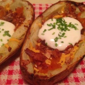 Choosing a vegan lifestyle doesn’t mean you have to miss out on fun, festive comfort foods like stuffed potato skins! This recipe for Fully Loaded Vegan Potato Skins features homemade coconut bacon, shredded vegan cheese, and dairy-free sour cream, served up in a delicious baked potato shell.