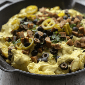 - Chopped, cooked vegan sausage