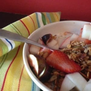 This recipe for So Buddhalicious Granola comes to us from Jenné Claiborne and Isabelle Steichen of SoBuddhalicious, a vegan meal planning company based in New York City. These lovely ladies joined us as guest chefs for Shindig. They whipped up this version of a delicious and healthy granola that can be eaten as a snack, with your favorite non-dairy milk or yogurt, or on top of their popular French Toast Buddha Bowl. With few ingredients and a light touch, this granola is quick to make. The recipe makes about 8 ounces, so be sure to double, or triple it, since it’s so fantastic!