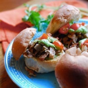 Find versatile jackfruit online or in some grocery stores; my local Trader Joe’s just started carrying it (yeah!). Rarely found fresh in your average grocery store, this enormous tropical fruit is easier to manage when you buy it canned. Jackfruit shreds easily and has a light, delicate taste and texture; perfect for absorbing flavors from your favorite seasonings. Allowing the jackfruit to develop a blackened, charred exterior is the key to the deep, smokey taste. Char just enough so that it’s speckled throughout the dish. Top your Vegan Vaca Frita Sliders with Avocado Chimichurri Sauce to add a luscious, velvety finish. Our chimichurri sauce takes this Argentinian classic one creamy step further by adding an avocado.